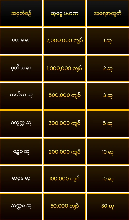 🎁 ဆုမဲအေဆာင္ေရအလိုက္ ဆုမ်ားေပးအပ္သြားမည္။